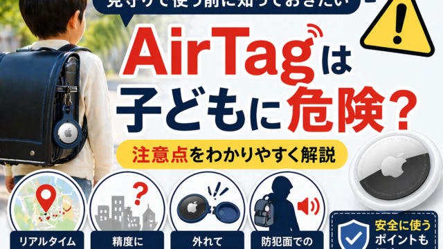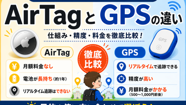 子どもの見守り用にAirTagを使うか、GPS端末にするか迷っていませんか?「どっちが安全?」「ちゃんと位置は分かるの?」と気になりますよね。結論:しっかり見守るならGPS、コストを抑えて使うならAirTagがおすすめです。AirTagとG...